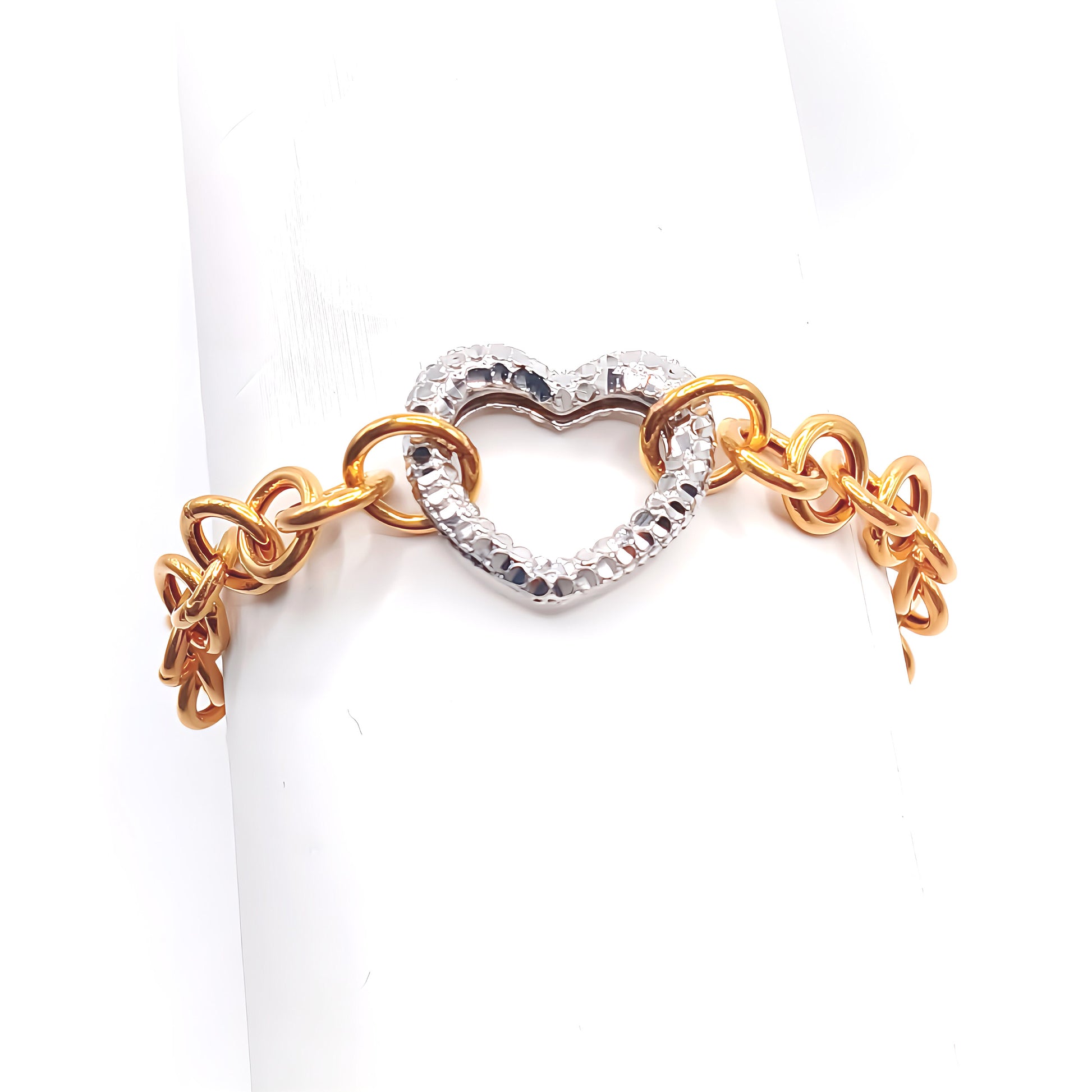 22K / 916 Gold - 2 Tones Heart Modest Link Bracelet - 10.24 gm